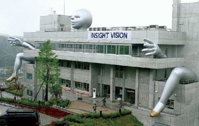 高橋が教務部長時代に開設した、マルチメディア時代に対応するグローバルなコアセンター。写真、映像、バーチャルリアリティといったメディアを総合的にとらえ、学生たちに多様な設備を提供しています。デジタルとアナログを融合したプロジェクトの実践も。オープン記念展「インサイトビジョン」には、ジャン=ルイ・ボワシエ、三上晴子、山川冬樹らも参加。高橋は建物に巨大な頭と四肢を取りつけ、ひとつの生命としてのメディアセンターを表現しました。